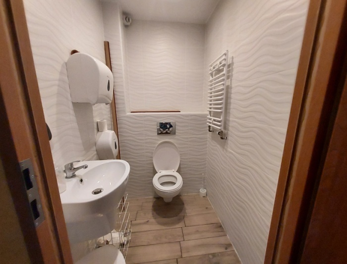 Na poziomie 1-wszego pietra: pomieszczenia biurowe, toalety, holl, klatka schodowa