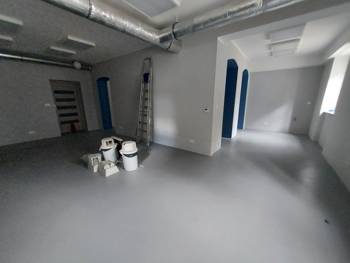 Na poziomie parteru znajdują się; pomieszczenia biurowe, toalety, klatka schodowa.