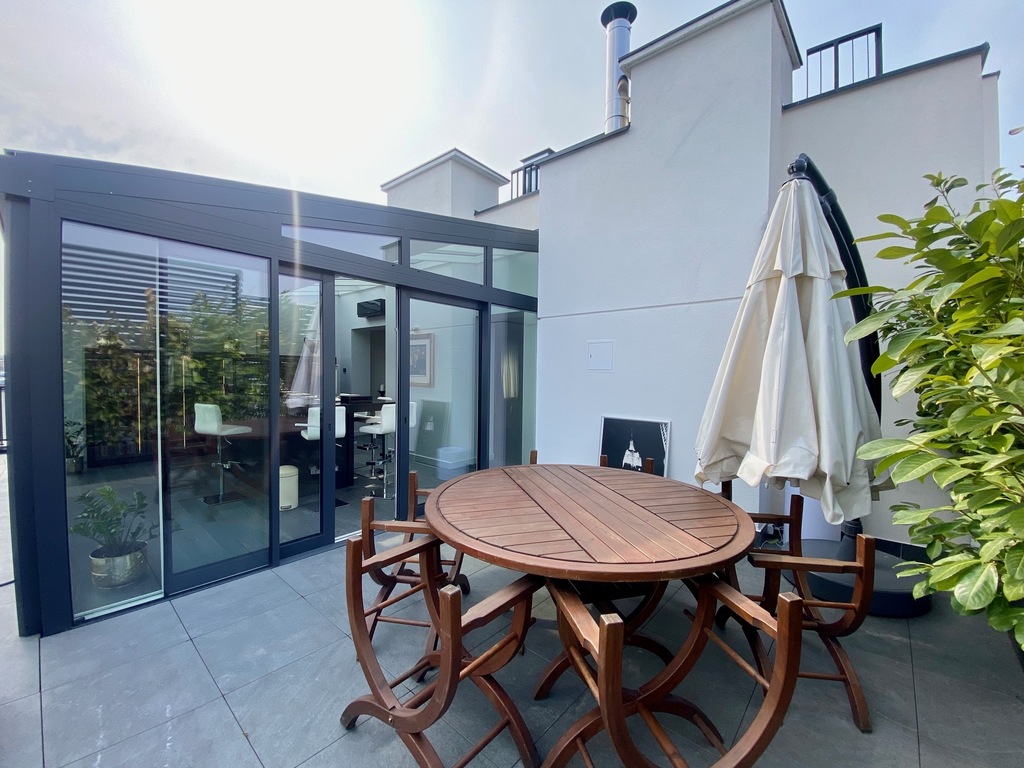 Penthouse o powierzchni 196 m2 znajduje się na czwartej i piątej, ostatniej kondygnacji. Dodatkowe powierzchnie w cenie to balkony i tarasy o łącznej powierzchni 156 m2 w tym oranżeria 29 m2..
