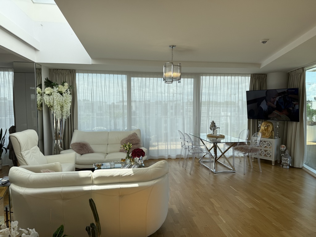 / pow. łączna 244 m2, w tym mamy ca.90 m2 apartamentu, 64 m2 tarasu balkonowego oraz 90m2 tarasu dachowego.