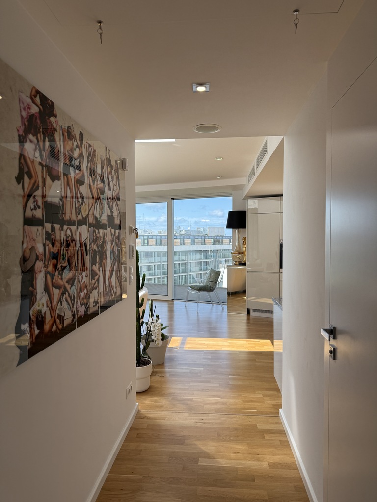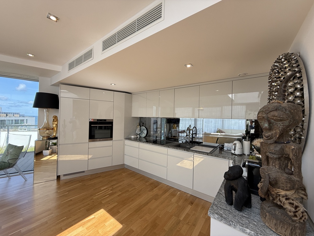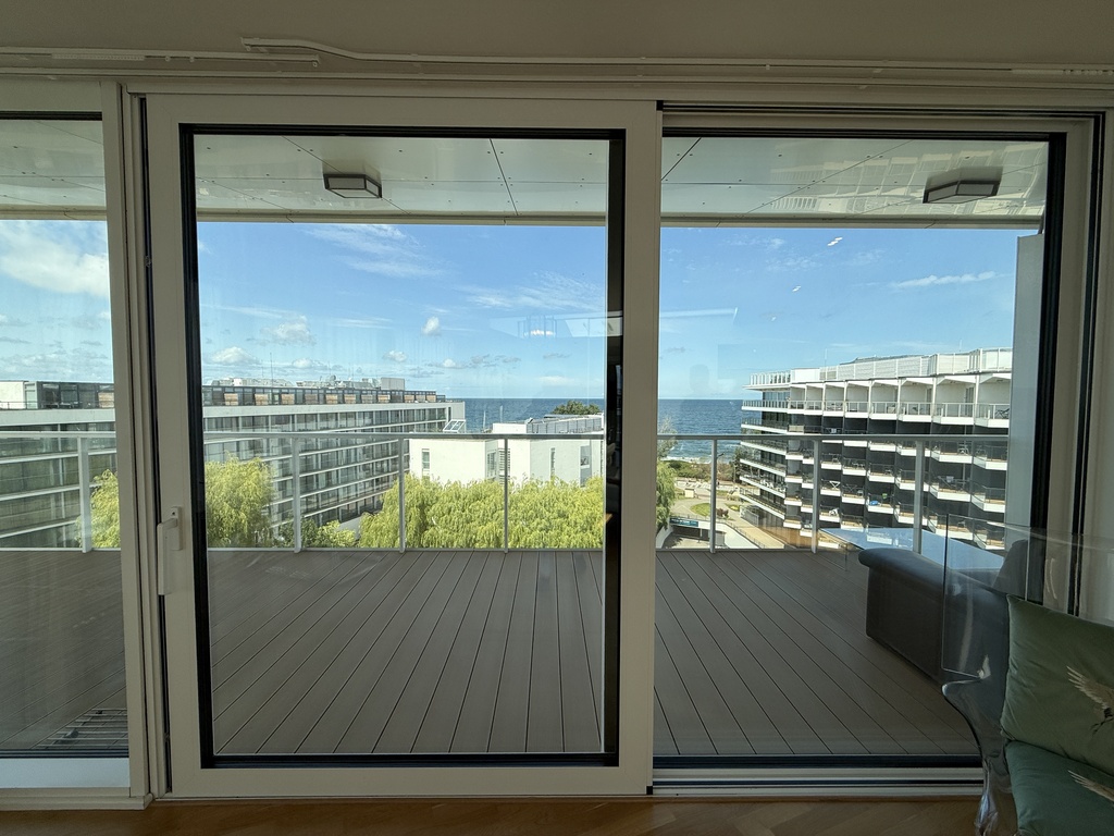 Zarówno z apartamentu, jak i tarasu dachowego rozciąga się piękny widok na morze do latarni morskiej włącznie.