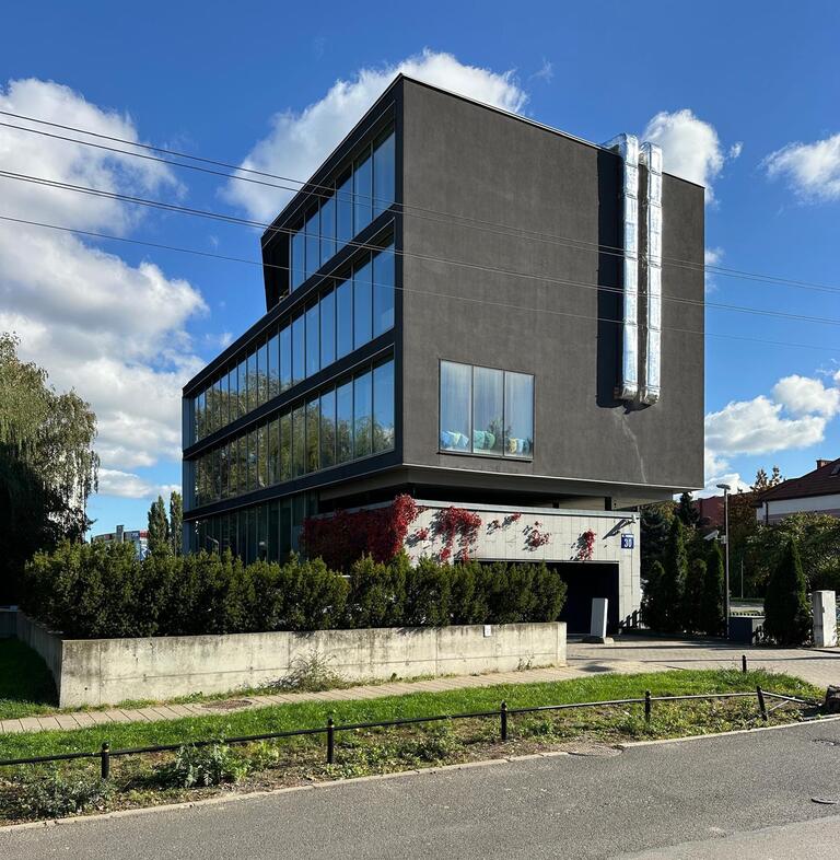 Nowoczesny budynek biurowy nieopodal portu lotniczego Okęcie. Przez ponad 14 lat, jako w pełni skomercjalizowany, przynosił rocznie ok. 2,1 mln zł NOI, co dawało zwrot na poziomie ca. 8,8%. Dziś następuje przetasowanie najemców co wynika z faktu, iż niektóre umowy dobiegły końca, a co niektórzy najemcy przenoszą swoją siedzibę w inne miejsce. Stąd poza samą próbą pozyskania nowych najemców na kolejne lata, pojawił się u właściciela koncept przekonwertowania budynku na cele mieszkalne, gdzie do uzyskania jest PnB na ponad 2300 PUM, przy planowanych samodzielnych jednostkach mieszkalnych o pow. ca. 25 m2 każdy.