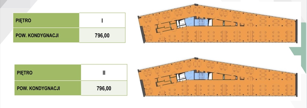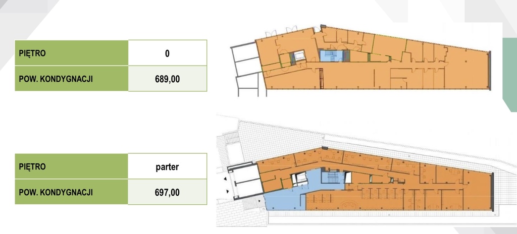 OPIS: obiekt dysponuje pięcioma kondygnacjami biurowymi o pow. od 700 do 800 m2 oraz garażem podziemnym na 46 miejsc postojowych.
